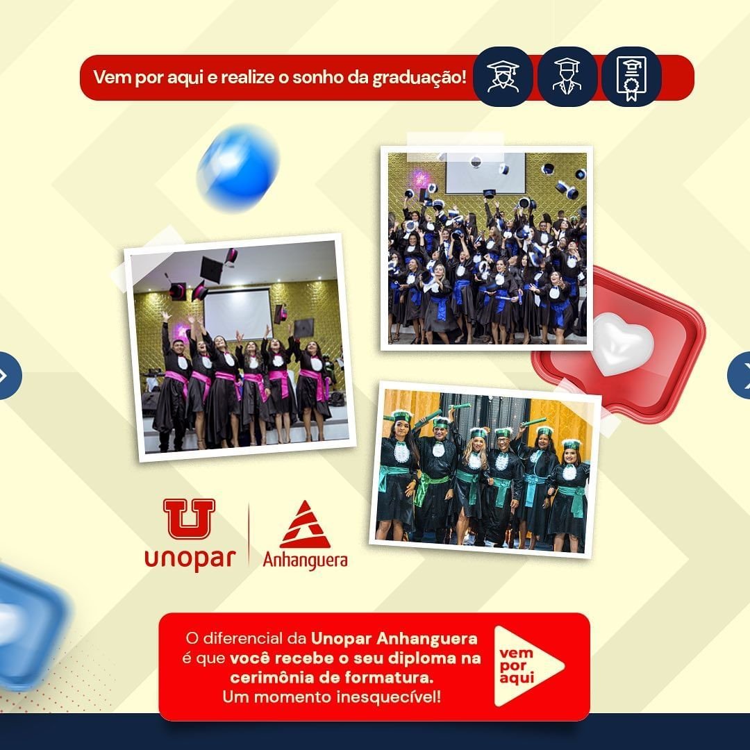 A Unopar Anhanguera é referência em inovação e reconhecida pela vanguarda acadêmica em seus cursos de graduação, extensão e pós-graduação lato e stricto sensu, com cursos nas modalidades semipresencial e online.