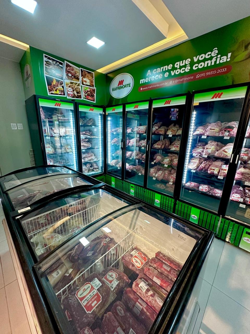 Ambiente convidativo, sempre abastecido com produtos fresquinhos — dos freezers às geladeiras, tudo com o selo de qualidade Mafrinorte, que há mais de 40 anos está presente na mesa das famílias paraenses.
